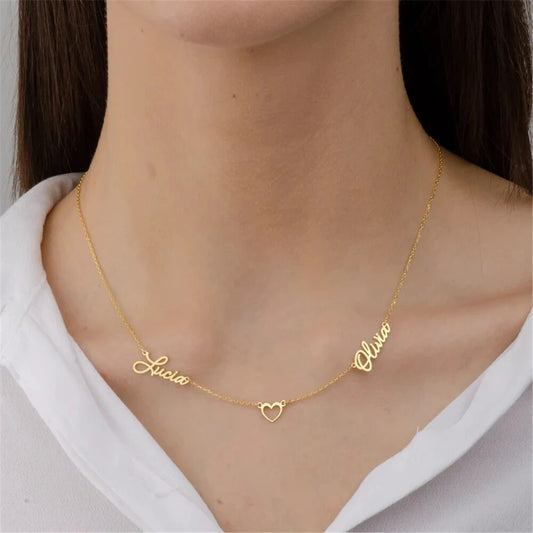 Two Name Necklace with Heart Dainty Personalized Necklace